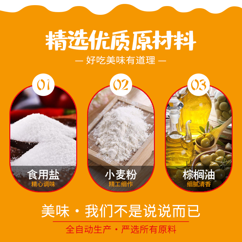 小麥粉、食用棕櫚油、干酵母、食用鹽、碳酸氫銨、碳酸氫鈉、食用香精