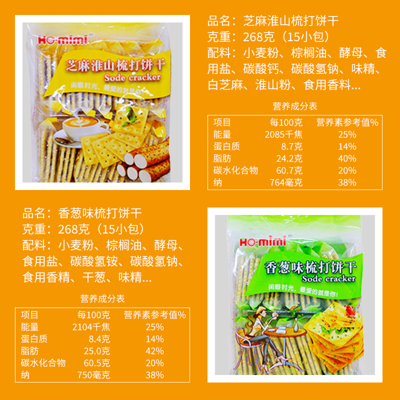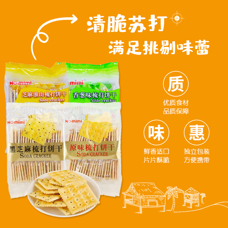 原味梳打餅干、黑芝麻梳打餅干、香蔥味梳打餅干、芝麻淮山梳打餅干