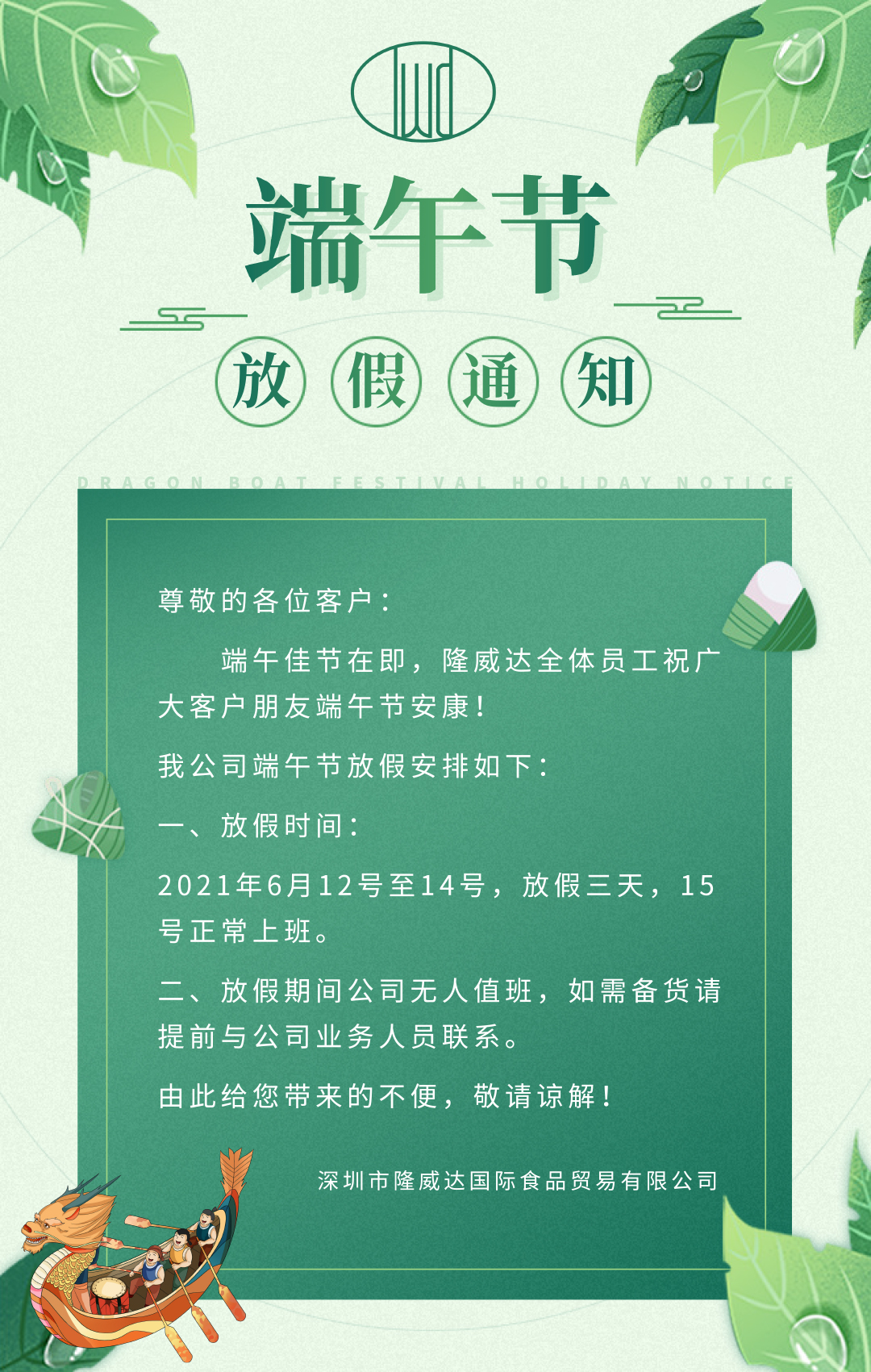 關(guān)于2021年隆威達(dá)端午節(jié)放假安排通知